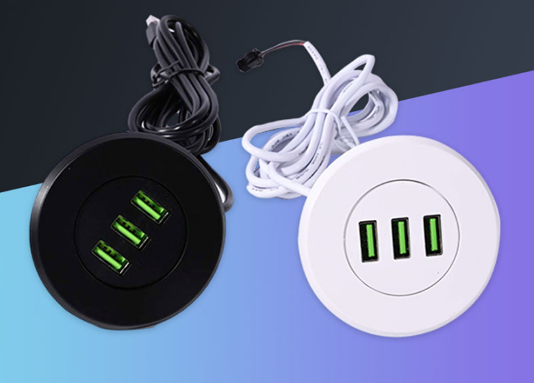 Desktop embedded 3-port USB quick charging stand 1 drag 3-connector multi-function round USB adaptor